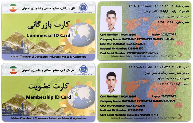 شرکت رایمند هم دارای کارت بازرگانی و هم دارای کارت عضویت در اتاق بازرگانی اصفهان
