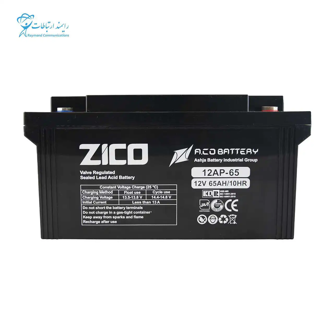 برخی از مشخصات فنی باتری یو پی اس 12ولت65 آمپر زیکو ZICO-65Ah:
